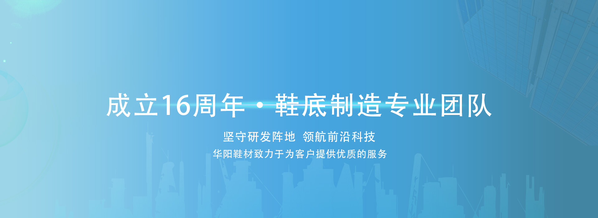 華陽鞋材于2004年成立,傳承晉江傳統工匠精神與現代化工藝技術完美融合,全面滿足客戶需求,成為國內市場上專業的鞋底制造商之一。多年來,華陽鞋材自主研發及引進最先進智能生產設備,致力于生產EVA一次(IP)成型鞋底、EVA二次(MD)成型鞋底、TPR鞋底、RB(橡膠)鞋底,TPU鞋底及配件及底材組合。
